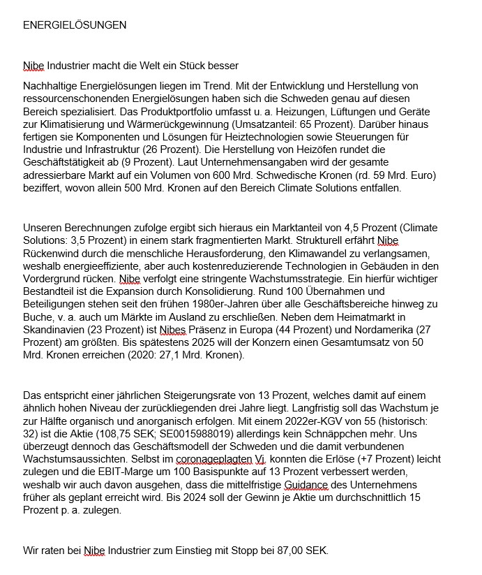 Habe früher viel in Schweden zu tun gehabt, und Nibe ist mit seinen Produkten mit sehr guten Referenzen sehr stark vertreten. In Herstellung und Vertrieb von Wärmepumpen gehört Nibe zu den Großen der Branche. Deshalb investierte ich in Nibe.