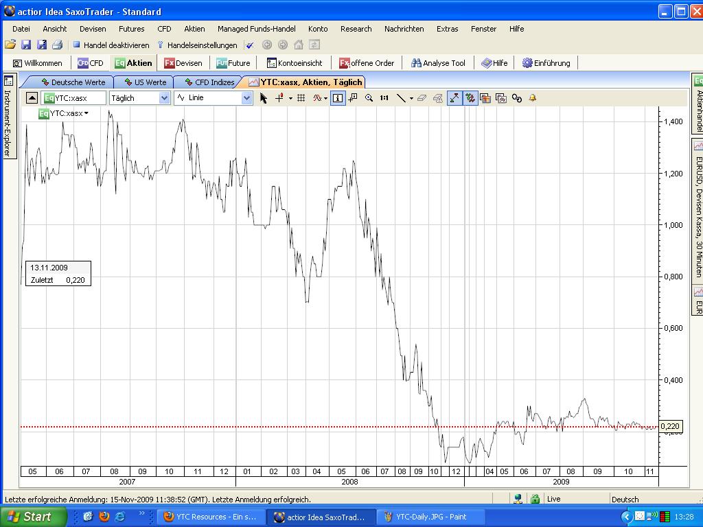 Vielleicht bringt man die Bohrergebnisse ja einen Tag vor Weihnachten, als besonderes Geschenk sozusagen! :) Fakt ist, die Teile sind im Labor und werden ausgewertet. Wie gut, dass ich Zeit mitgebracht hab! Ich denke, hier ist es wichtig dabei zu sein, ansonsten wird es schwierig werden die optimale Performance mitzunehmen. YTC läuft vielleicht viele Wochen seitwärts, aber dann kann es auch wieder sehr schnell gehen. Wir hier, die wir schon länger im Rohstoff-Sektor investieren wissen, wie schnell dass dann auch nach oben gehen kann. Ich hab keine Eile. Außerdem ist das Jahr nimmer sonderlich lang.