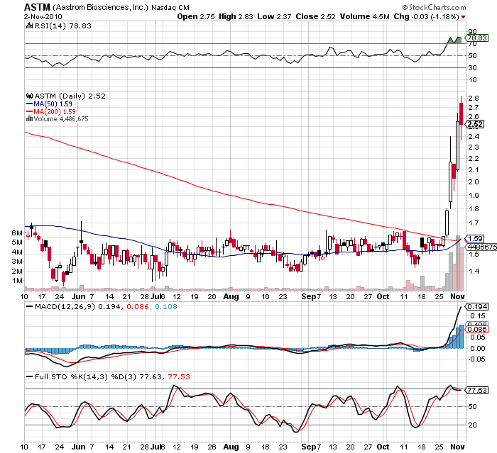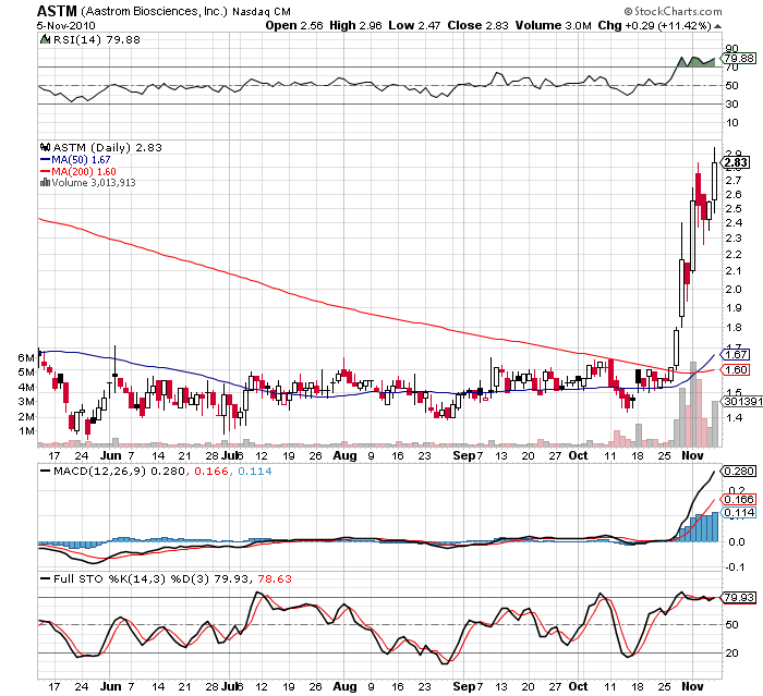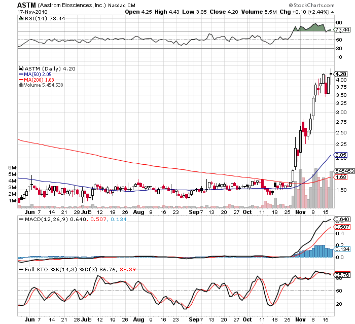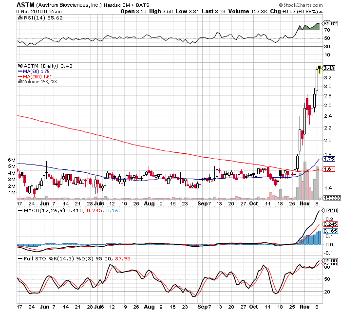 News catalyst has shares of Aastrom pointed higher