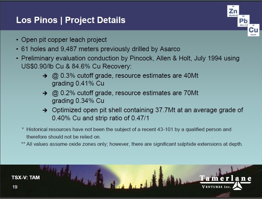 Auszug aus der neuesten Präsentation von Tamerlane. Das peruanische Kupferprojekt ist schon in diesem frühen Stadium ein aussichtsreicher Kandidat für die Produktion!