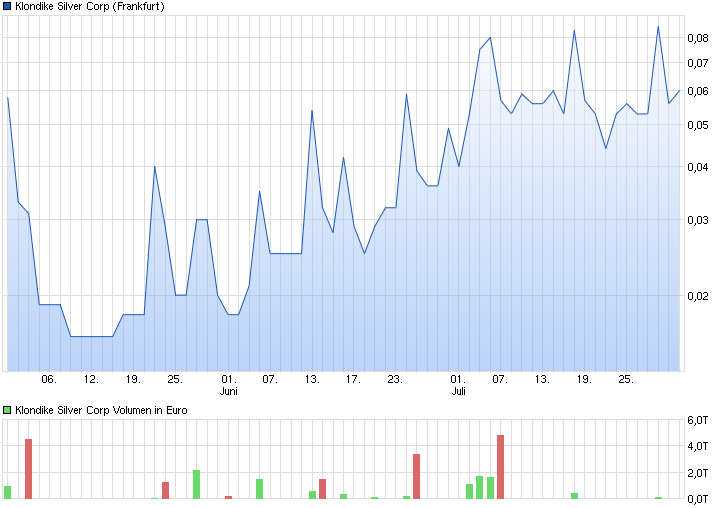 Man achte insbesondere auf den steigenden Silberkurs, man sieht es ja in der Steigerung der Marktkapitalisierung bei Klondike Silver