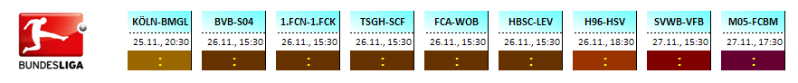 Die Übersicht der Partien des 14.Spieltages der 1.Bundesliga, Saison 2011/12 zum tippen: