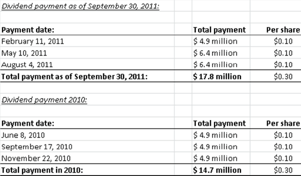 Ist die Transaktion beendet, dürfte es wieder hoch gehen! Unternehmen schüttet außerdem am 16.12.2011 eine Cashdividende in Höhe von $0.03 aus.