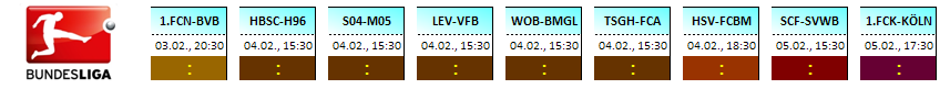 Die Übersicht der Partien des 20.Spieltages der 1.Bundesliga, Saison 2011/12 zum tippen: