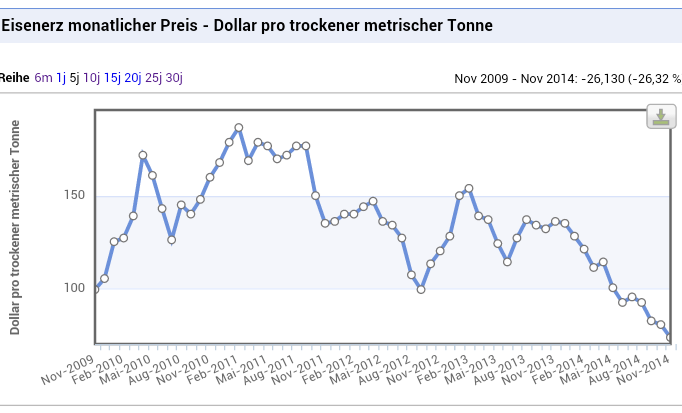 Der Kurs ist am Boden, weil der Preis von Eisenerz schwach ist, weil das erste Quartal schwach war (harter Winter in den USA) und weil der Hedgefond "Casablanca" in den Vorstand des Konzern will...