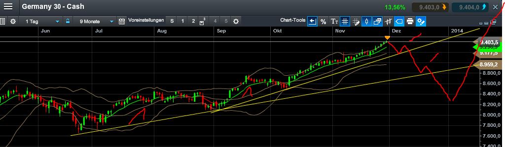Dax könnte also nochmal die 9400-9378 ansteuern. Bruch? Dann wird es rot ....
