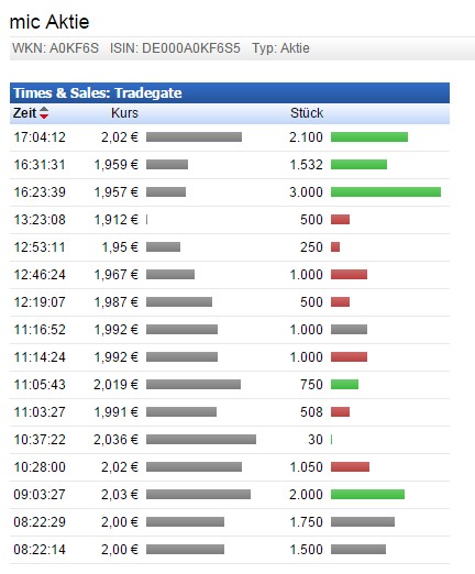 Die letzten Kurse bei Tradegate noch, Ende für Heute! ;-)