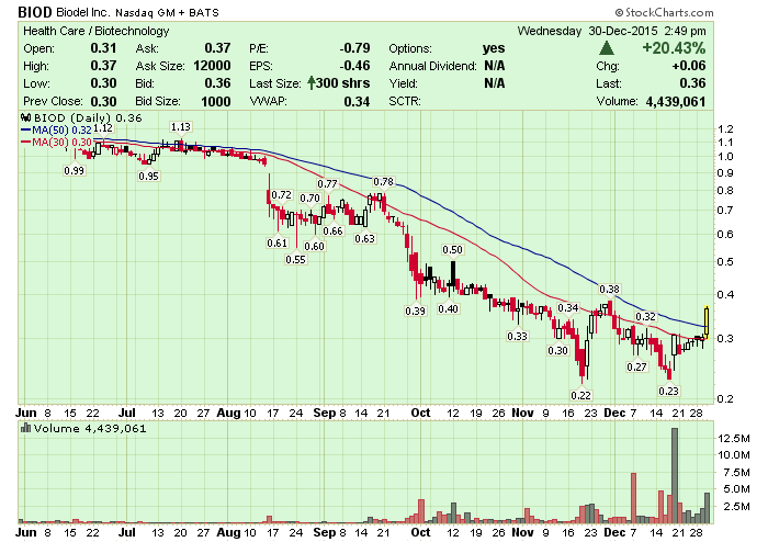 "At December 31, 2015, Biodel had cash and cash equivalents of $37.0 million and 64.1 million shares of common stock outstanding."