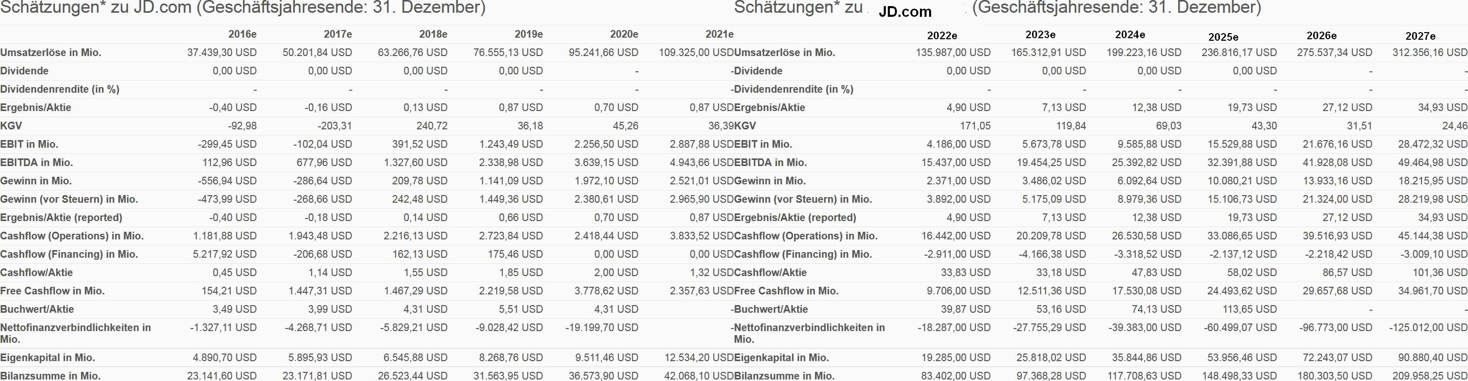 müsste es aber langsam wieder drehen. Die Kursziele liegen nun im 50 $ Bereich. Die letzte Empfehlung ist vom 26.09 siehe auch https://www.marketbeat.com/stocks/NASDAQ/JD/