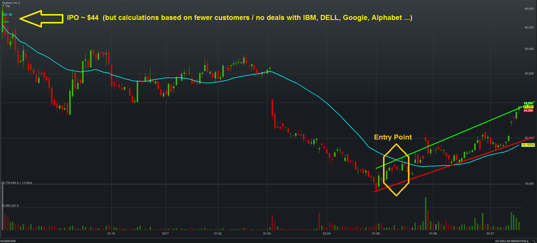 Nach dem Einbruch am Anfang des Jahre wurde u.a. das Sales Team besser aufgestellt. Außerdem versteht sich Nutanix jetzt selbst als reine Software Firma. Es gab im letzten Jahr auch ein Übernahmeangebot von Cisco über 4 Mrd. Dollar.