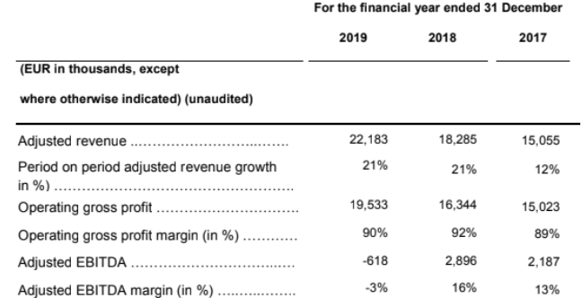 Exasol schreibt momentan noch Verluste, wobei die Umsätze in 2019 und 2018 um durchschnittlich 21 Prozent gewachsen sind. Anbei werde ich diverse Tabellen posten, welche die Bilanzen des Unternehmens aufzeigen.