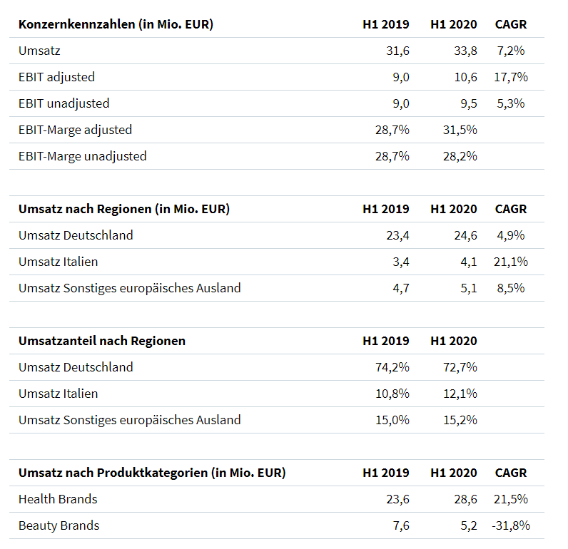 "Spätestens mit der jetzt erfolgten Veröffentlichung des Halbjahresberichts der PharmaSGP Holding ist offensichtlich, dass der Großaktionär wenige Tage vor der am 19. Juni 2020 erfolgten Notizaufnahme kräftig abgeräumt hat. So stehen per Ende Juni 2020 nur noch 5,26 Mio. Euro an liquiden Mitteln auf der Aktivseite – nach 88,48 Mio. Euro zum Jahresende 2019. Parallel dazu sackte das Eigenkapital von 95,58 Mio. auf 7,97 Mio. Euro. Damit beträgt der Buchwert des Anbieters von rezeptfreien Arzneien gerade einmal 0,66 Euro je Aktie. Boersengefluester.de bleibt dabei: In der Kommunikation nach außen hätte diese Transaktion sehr viel deutlicher gemacht werden müssen. Immerhin steigt nicht jeder potenzielle Investor ganz tief in den Wertpapierprospekt oder die später veröffentlichten Zwischenberichte ein. Nun liegt es also an PharmaSGP, mit dem an sich sehr profitablen operativen Geschäft, für wieder deutlich bessere Bilanzrelationen zu sorgen. Immerhin spielen Finanzverbindlichkeiten keine wesentliche Rolle bei der in Gräfelfing bei München angesiedelten Gesellschaft. Am Ausblick für das Gesamtjahr 2020 hat sich gegenüber den kürzlich veröffentlichten Vorabdaten (siehe dazu unseren Beitrag HIER) nichts geändert. So rechnet der Vorstand damit, beim Umsatz die Wachstumsrate des ersten Halbjahrs von gut sieben Prozent auszubauen. Zudem soll die bereinigte EBIT-Marge des ersten Halbjahrs von 31,5 Prozent weiter steigen."