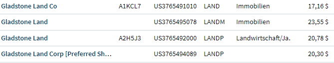 US3765491010 - Gladstone Land Co - US-Symbol LAND