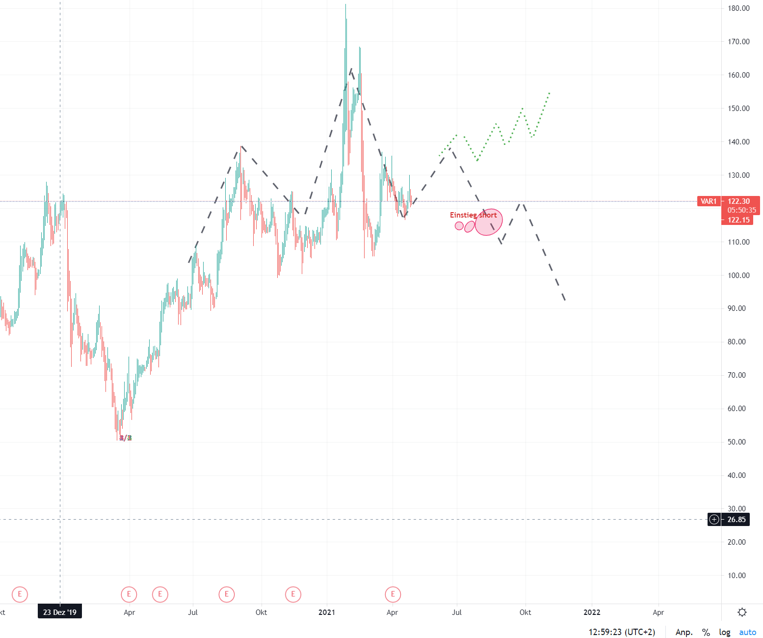 Varta befindet sich nach wie vor noch in meinem Longdepot, mit einem durchschnittlichen EK von unter 100.-€, den letzten Einkauf habe ich im Sommer 2020 getätigt. Ich habe nie ein Derivat auf Varta besessen, weil mir das Trading dieses Wertes für den potentiellen Erfolg zu aufwendig ist. Das kann ich bei anderen Aktien deutlich produktiver bewerkstelligen.
