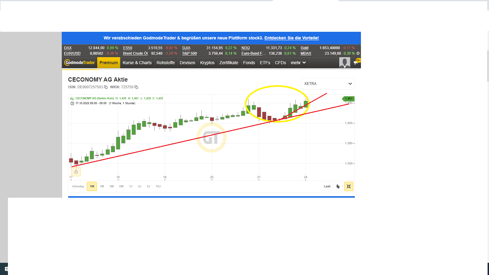 Ceconomy im Sog dann ebenfalls über das Tageshoch und "fettes Kaufsignal" dürfte dann ausgelöst werden. Ich gehe bei meinen momentanen Zielen nur von Charttechnik aus... nicht mehr nicht weniger...aber wer sich da etwas auskennt sieht es ja selbst...
