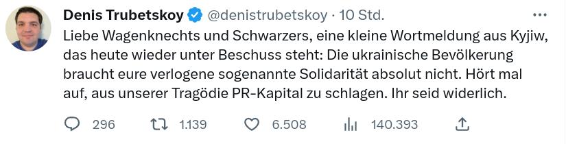 Kannst gern ein paar Ukrainer präsentieren, die die Aktion der beiden Zicken unterstützen.