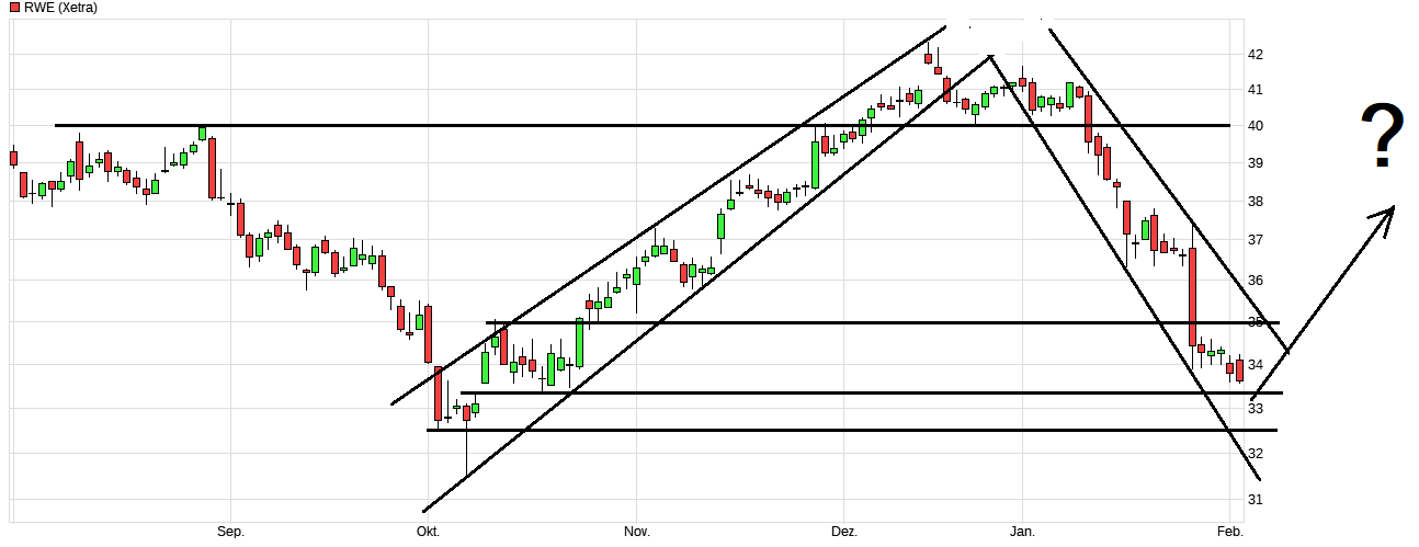 ist gut so die sind schon unter 33 € da kommt Freude auf. Ich hatte vor längerer Zeit geschrieben das es abwärts geht mit RWE , und ich denke es sind eine Menge Anleger auf die Anaysten reingefallen . Ich warte heute noch ab und dann sieht man den weiteren Verlauf ob die noch die 30€ knacken in den nächsten Wochen. NmM.