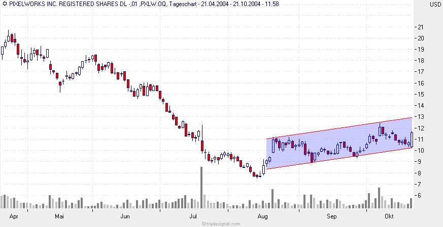 in den breiteren abwärtskanal. nun sind noch schnelle 30% drinn ! bis 12 $ dürfte pixxi laufen. wenn auch dieser abwärtstrend nach oben durchbrochen werden könnte, wäre bei 16 $ der nächste wiederstand. nun meine chartanalyse