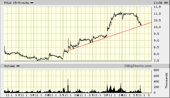 $Change: PXLW closed up 0.42 from the prior day's closing Price.
