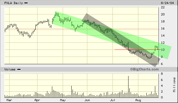 Volume: PXLW traded 1,262,000 shares on 8/27/2004.