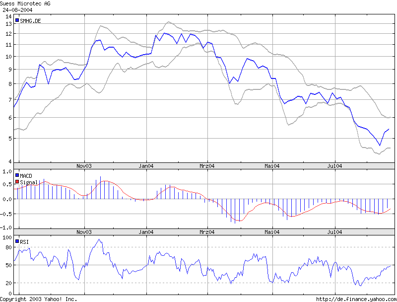 | Täglich aktuelle Chart-Tradingsignale Suess Microtec: Vor der nächsten Hürde ![]() 26.08.2004 - Schöne Kursgewinne hat die Aktie seit der letzten Analyse erzielen können, jetzt steht die nächste Bewährungsprobe an. ( aa ) |