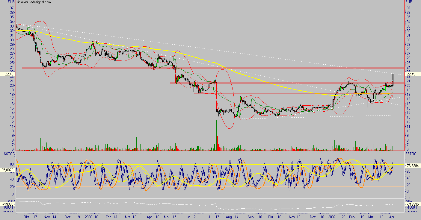 Kurs kam vor kurzem von der 20 EUR-Marke herunter, vielleicht will er wieder zurück in alte Höhen, schaut Euch mal den Chart an. Es könnte sich lohnen diese Aktie nicht zu übersehen