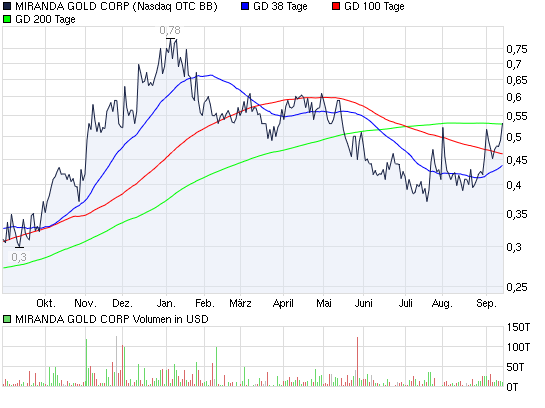 Miranda Gold Corp. ist ein Unternehmen, das sich auf die Exploration von Goldvorkommen in Nevada, Alaska und Kolumbien spezialisiert hat. Der Schwerpunkt liegt auf Goldexplorationsprojekten, die beste Aussichten auf die Entdeckung hochwertiger Goldvorkommen haben. Miranda führt eigene Basisexplorationsarbeiten durch und wendet anschließend ein Joint-Venture-Geschäftsmodell für seine Projekte an. Damit sollen die Fundergebnisse optimiert und das Explorationsrisiko gleichzeitig möglichst gering gehalten werden. Miranda arbeitet zur Zeit mit den Partnerunternehmen Agnico-Eagle (USA) Inc. Montezuma Mines Inc., NuLegacy Corporation, Piedmont Mining Company Inc., Ramelius Resources Ltd., Red Eagle Mining Corporation und nun auch mit Navaho Gold Pty Ltd. zusammen.