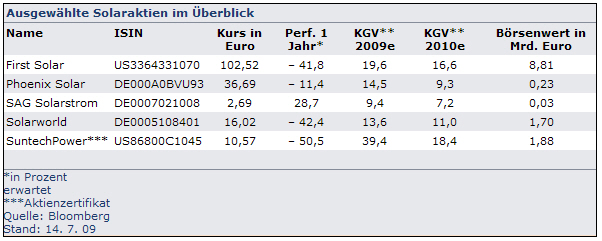 Dunkle Zeiten für Solaraktien 11:15. 15.07.09