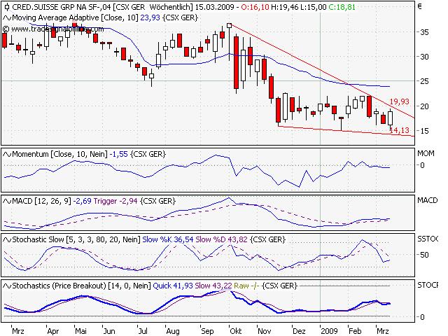 Wenn ich den Chart der CS beobachte (und ich bin wie gesagt kein experte), hast liegst du gar evtl. gar nicht falsch. Es scheint, als ob die CS den Boden gefunden hätte und es nun einen Seitwärts-t­rend gibt.