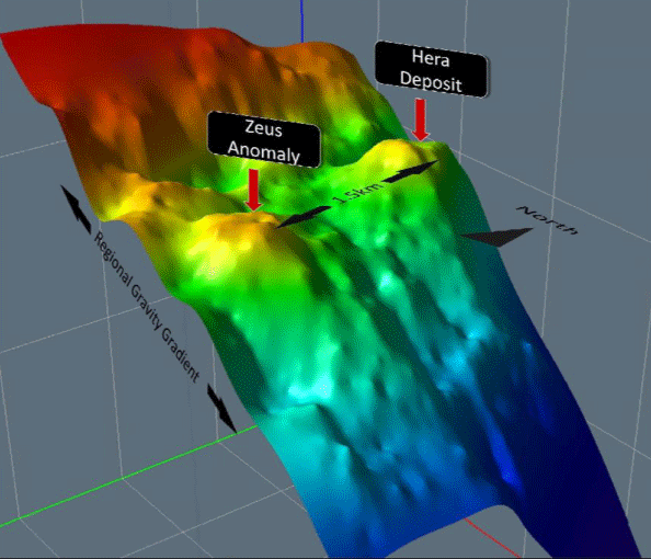 Zeus-Anomalie, die kürzlich entdeckt wurde. Gestern wurden (sehr gute) Bohrergebnisse vom Heradeposit veröffentlicht. Dass die dort Golf finden war mir eigentlich schon klar. Aber die Ergebnisse von Zeus stehen noch aus. Die Gesamtresource von YTC könnte sich mit Zeus schlagartig verdoppeln.