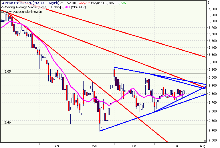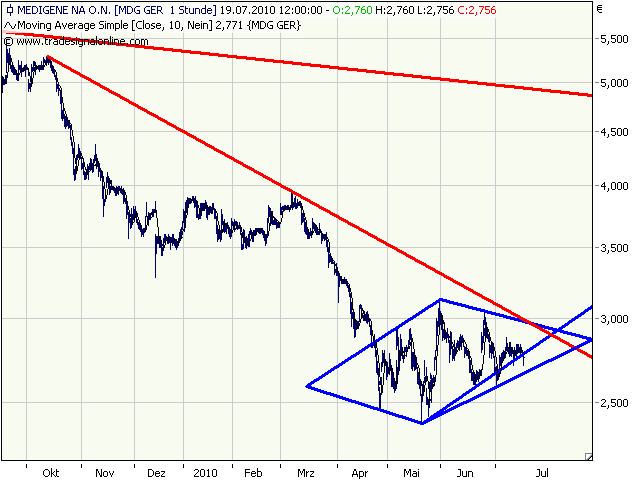 Der Kurs beschreibt seit Ende Mai ein spitz zulaufendes