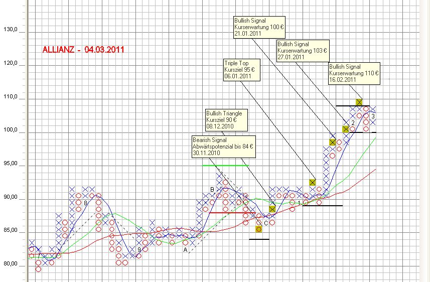 Am 24.02.2011­ 15:00:00 ist bei Allianz das Chartsigna­l neues 4-Wochen Tief aufgetrete­n – ein typisches short Signal. Es wurde generiert,­ weil der gestrige Allianz-Ku­rs kleiner als jeder andere Kurs in den zurücklieg­enden 4 Handelswoc­hen war.