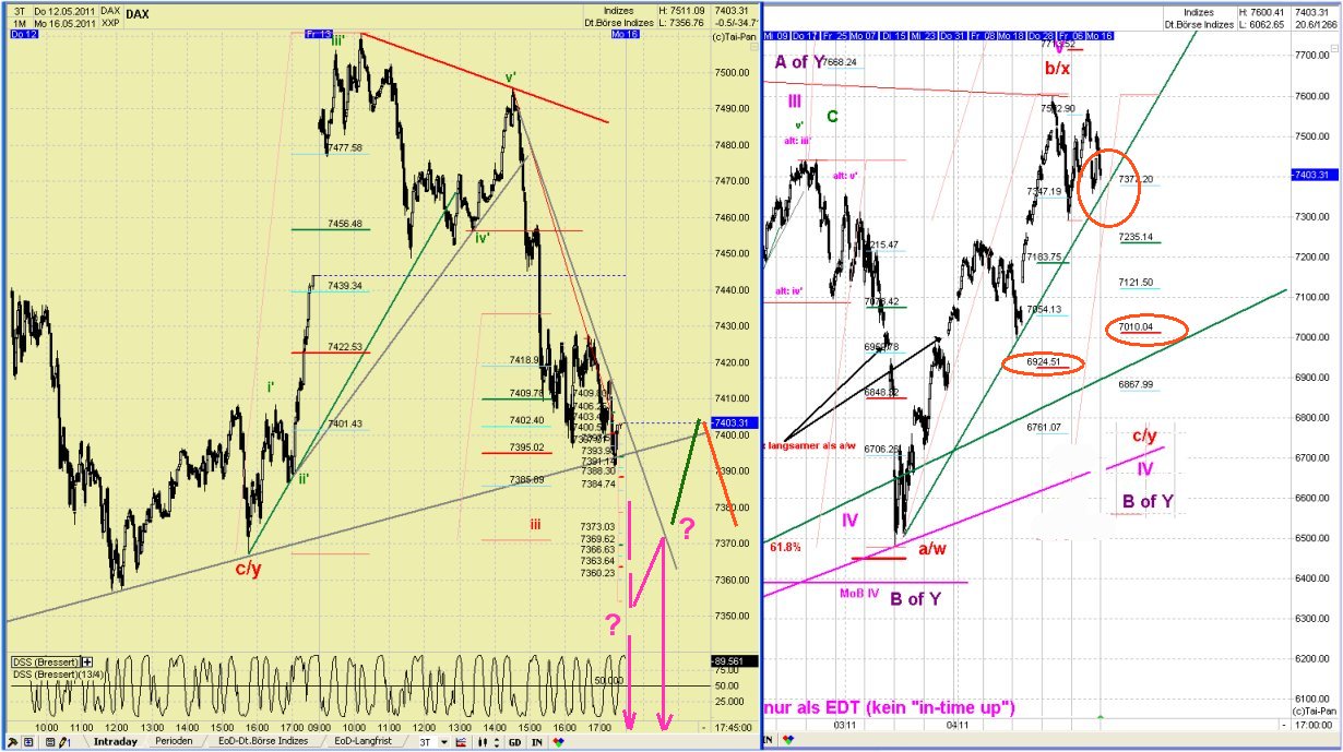 Im "worst case" lag bei 7415 nicht das Ende der Welle iv sondern das einer ii und der DAX läuft bereits in einer Welle iii (ohne Einschränkungen) abwärts.