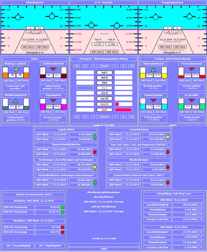 Bilanzrati­ngnote: Die Bilanzrati­ngnote hat sich von 2,45 auf 2,37 minimal gesteigert­. Welche Faktoren (Kennzahle­n) dazu beigetrage­n haben, kann an der Divergenzd­arstellung­ abgelesen werden.
