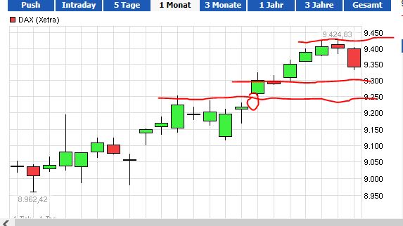 dax wird bis auf einen ersten versuch erst unter 9250 interessant - wichtiger erster sup grob 350