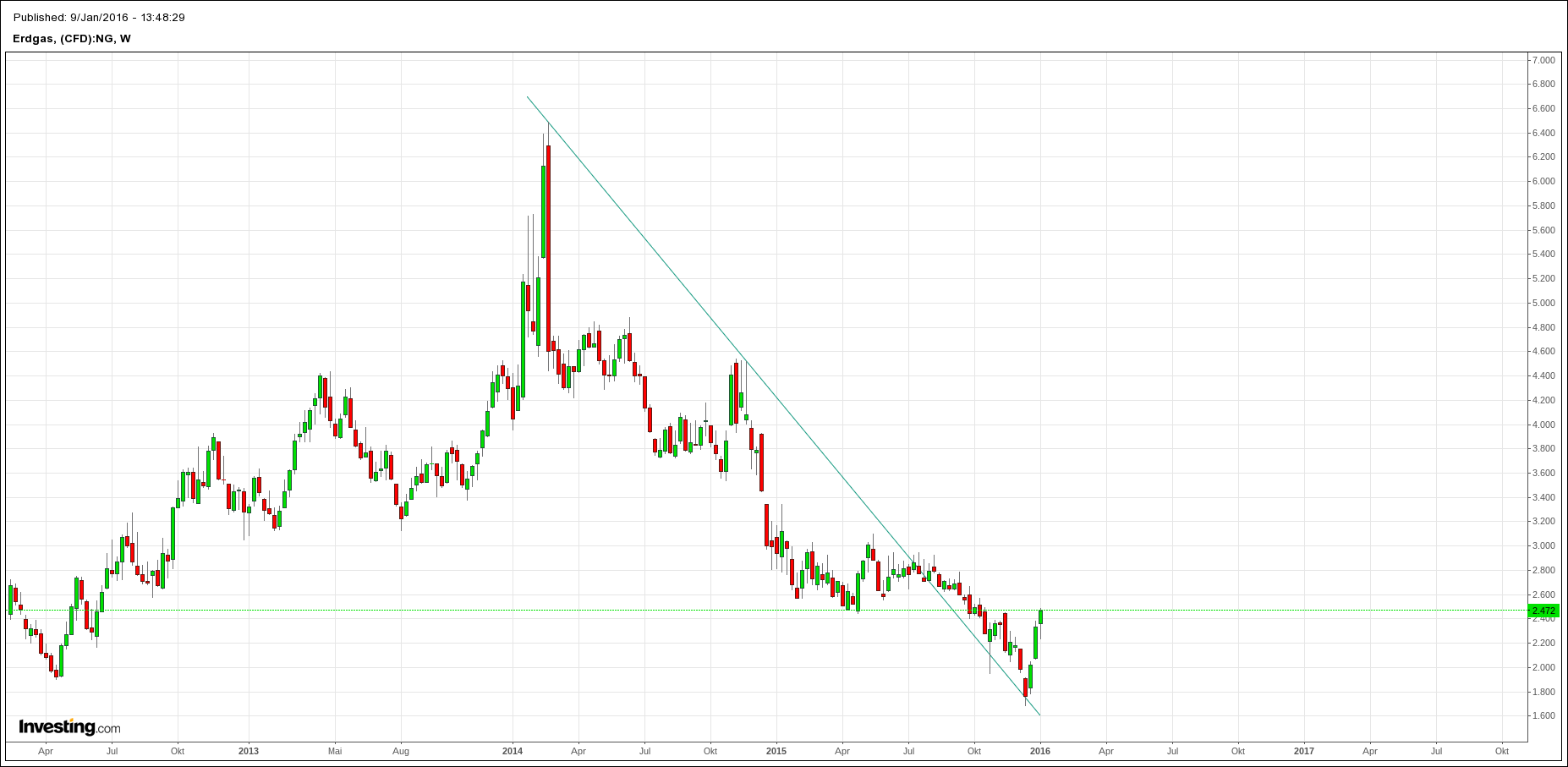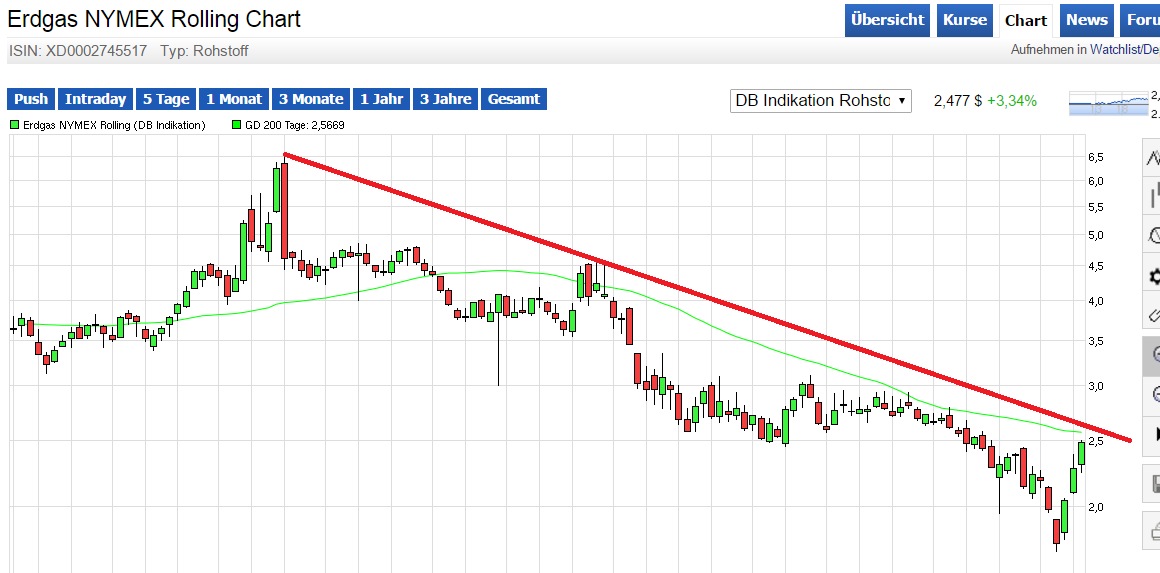 Ich bin gespannt, was mit dem Gaspreis passiert, wenn er die grüne Linie erreicht, die sich "zufällig" auch im Bereich der 200 Tage-Linie befindet.