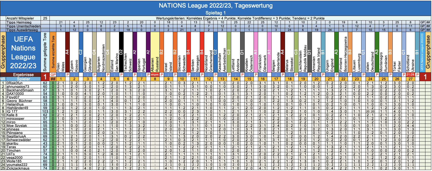 >>> NATIONS League, Saison 2022/23, der Spieltag 2 ...