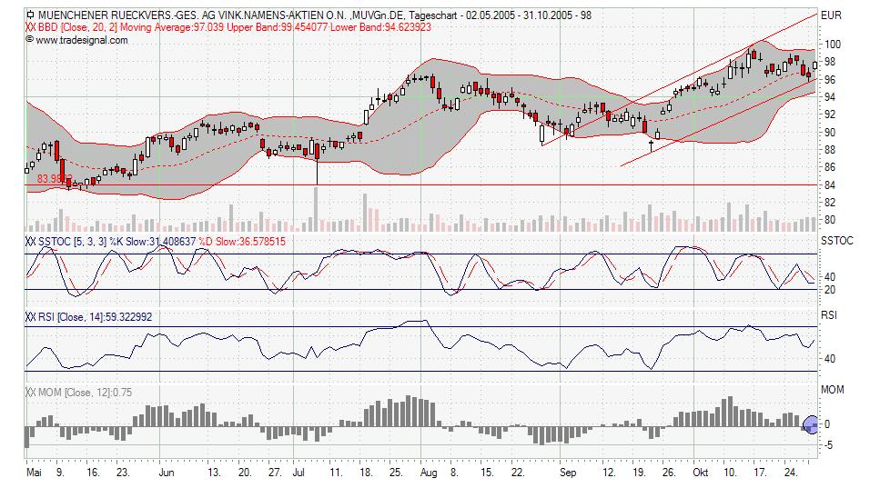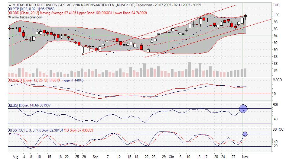So heute gingen seit langem die ersten Aktien für 100 € und mehr über den Tisch, es war ja eigentlich nur eine Frage der Zeit, MüRück hat einfach noch gegenüber den Dax + Allianz aufzuholen. Wenn der Markt mitmacht, sehen wir bald Kurse um die 105 €. Ich habe ja meinen Gewinn bei MüRück erstmal mitgenommen aber werde die Aktie dieses Jahr bestimmt nochmal traden ... Momentan würde ich aber auf kleine Korrektur warten - könnte aber weiter rauf Richtung 102 - 103 € gehen vorerst solange der Markt mitspielt - Die Amis tun´s ja heute zumind. bis jetzt!