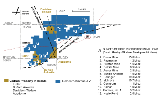 Toronto, Ontario CANADA, August 09, 2006 /FSC/ - Vedron Gold Inc. (VG - TSX Venture, VN3 - FWB), plans to commence exploration drilling on the Fuller Property located adjacent to the north of the Buffalo Ankerite property and west of the Porcupine Joint Venture (Goldcorp and Kinross Gold) Dome Mine operation. A drilling rig is currently being mobilized to the property.