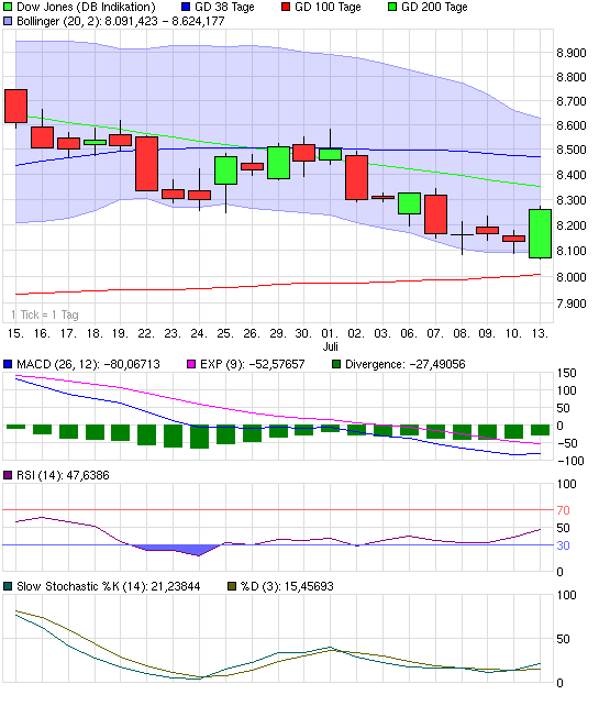 Anderenfalls müsste der DOW über 8250 steigen, so wie der DAX über 4650. Hat nun der DAX heute mal wieder übertrieben oder holt der DOW das noch nach?