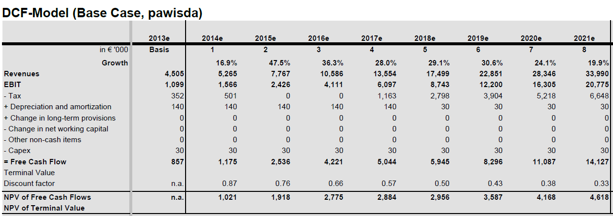 Hier die Tabelle von BankM zu den Prognosen für pawisda. Entscheidend wird sein, ob die Marge wirklich so hoch sein wird. Andererseits kann ich mir auch höheres Umsatzwachstum vorstellen. Ohne Grund kommt ein Herr Mäuser sicherlich nicht zu Max21.