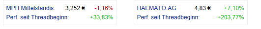 Haemato ist schon Super gelaufen - wird wohl auch bald die 5 Euro Marke knacken.