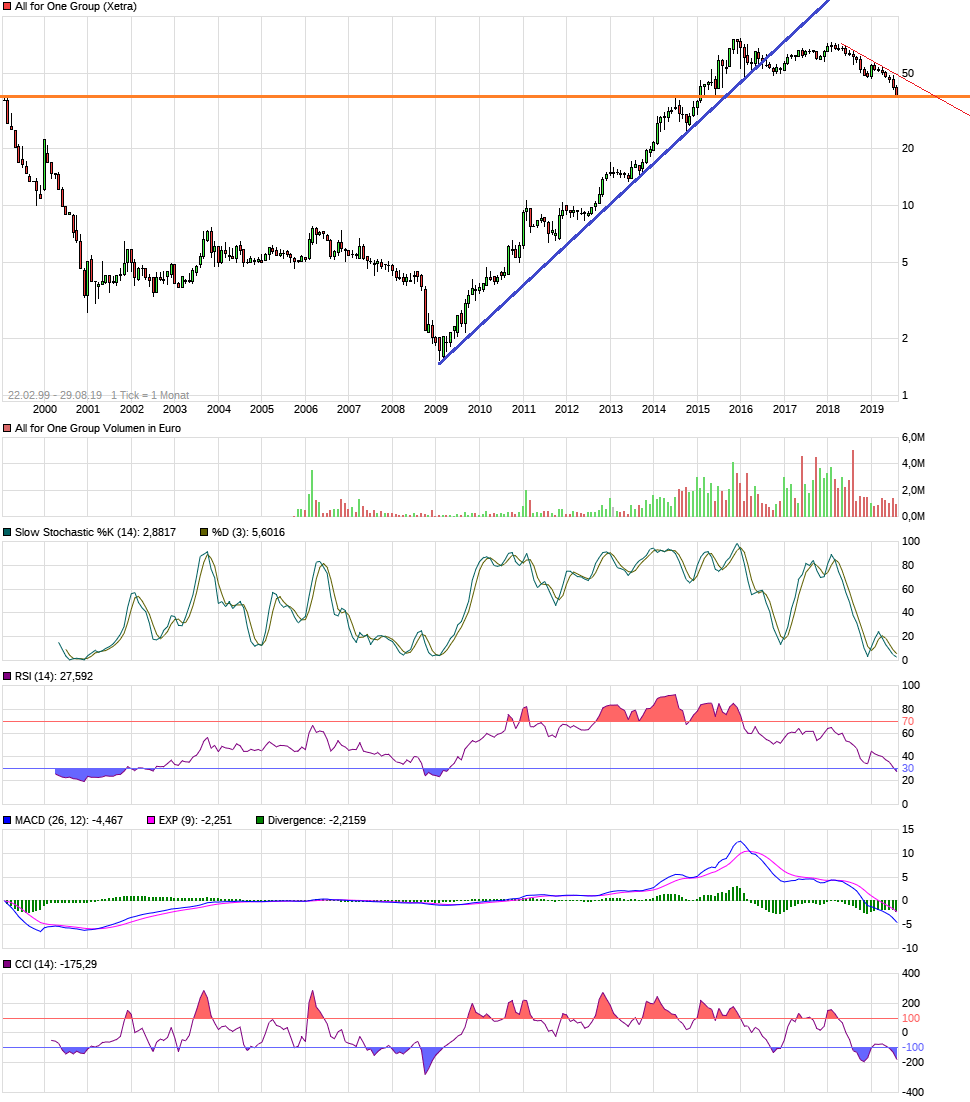 Würde die 37 durchbrochen, gäbe es die nächsten Unterstützungen wieder bei rund 30 und 25 €. Aber das wäre beides fundamental eigentlich lächerlich, weshalb ich glaube, dass wir die nächsten Wochen eine Gegenbewegung erleben sollten.