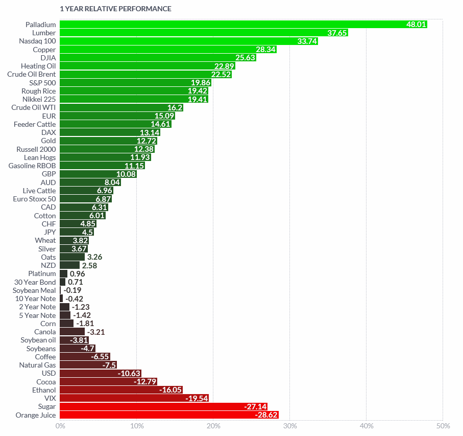 Palladium und US-Bauholz (Lumber) waren Top. Aber auch Kupfer lief erstaunlich stark.