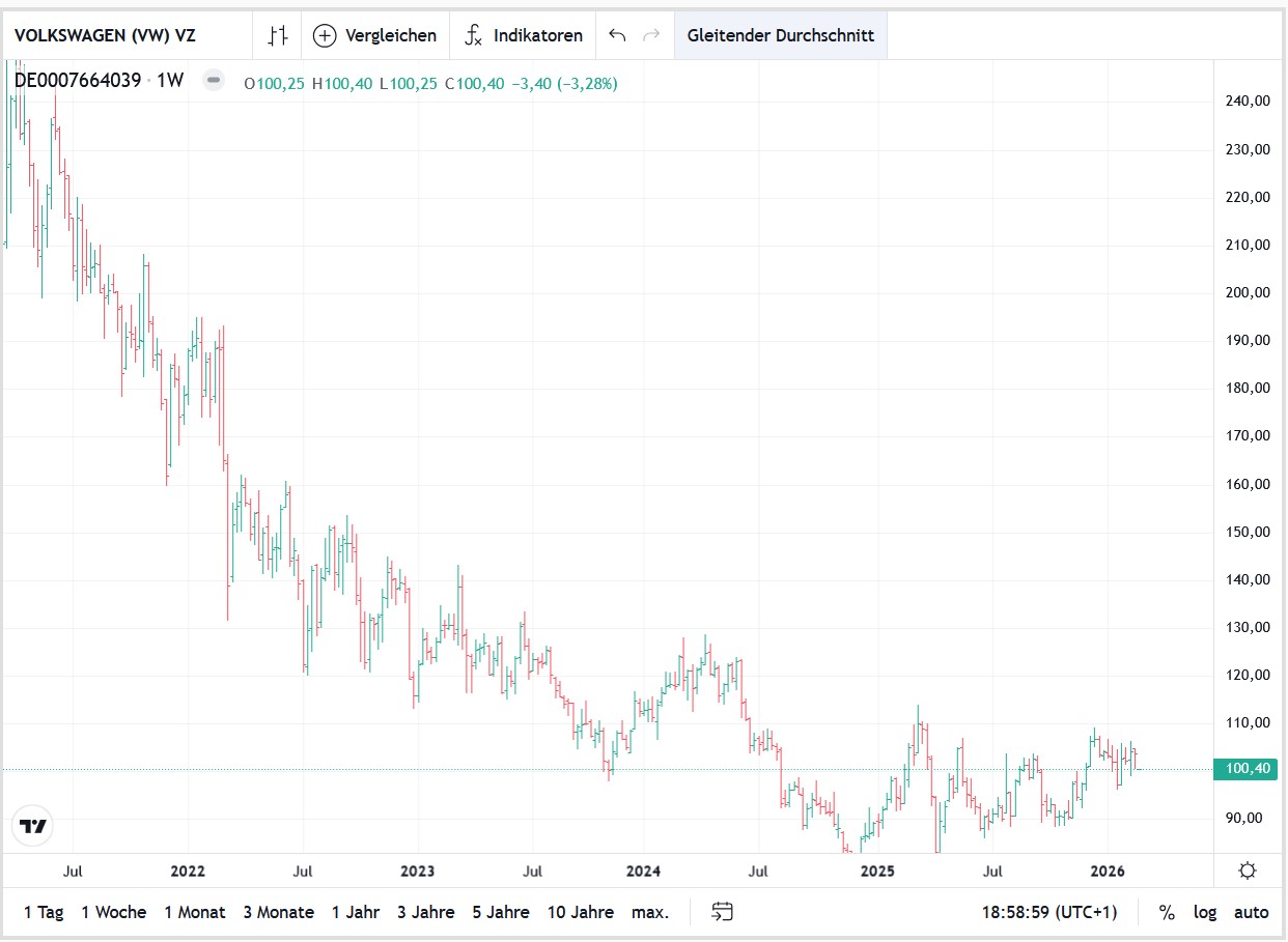 Investoren den stört der Kurs gar nicht die sind aus Überzeugung und der Dividende bei VW investiert.