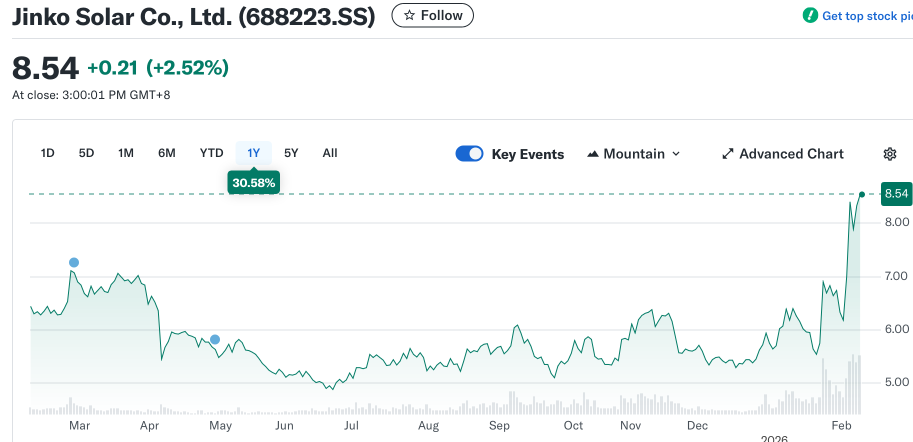 Jinko hält weiterhin mehr als 50% der Anteile an der operativen, in Shanghai gelisteten Tochter, deren MKAP binnen zwei Handelstagen mal eben um 33% auf nun wieder mehr als 10 MRD USD gestiegen ist.