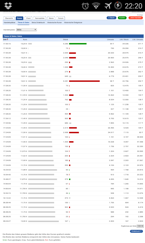 Schaut euch mal den Kursverlauf mit Kursen von heute auf Xetra an. Bestimmt eine Welle. .