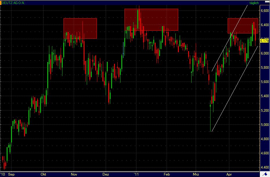 Dies könnte man solangsam negativ ansehen und es könnte vielleicht doch wieder in den Bereich von 6 € gehen ...