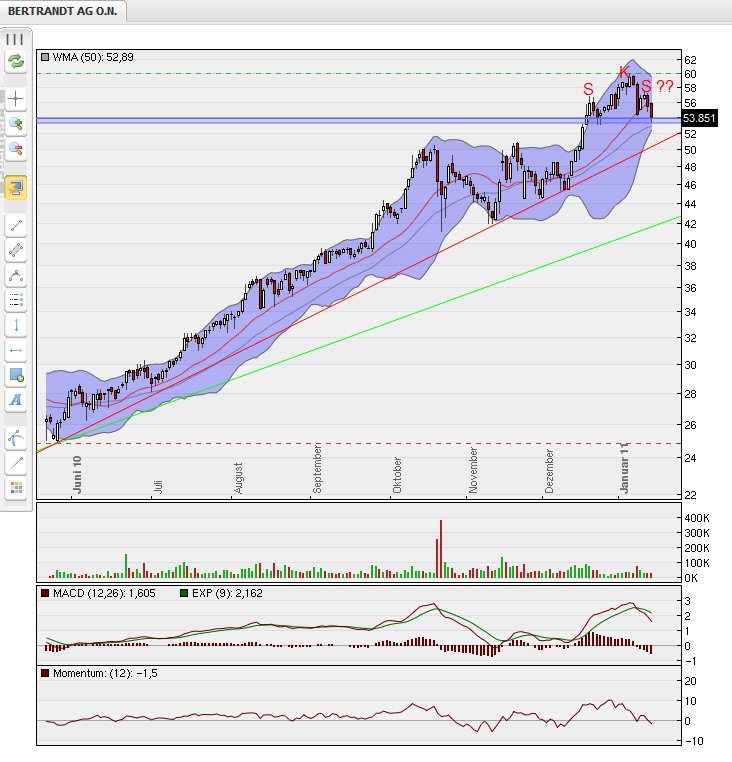 es bildet sich vll eine SKS formation, mit nackenbereich 53,50 - 53,85 €. Hält dieser nicht stand, sind kurzfristige abgaben bis 51,00 EUR wahrscheinlich (rot) . Spätestens da muss es drehen, sonst bin ich erst mal raus.