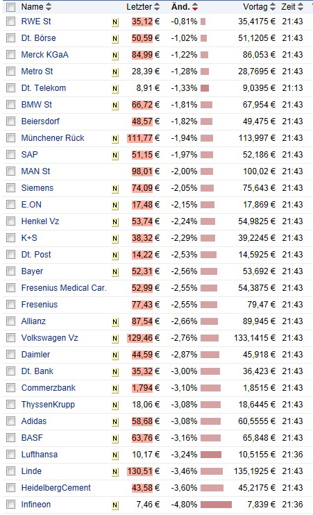 4% Minus im Dax bei nur - 1,6% in Dow, wobei der auf Höchststand mit 13.000 war ... . Immer das selbe.